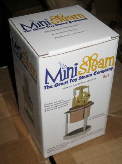 This is a miniature beam engine mounted on a tripod and heated by a candle in a similar manner to the Wilesco D2. The safety valve looks like a standard Wilesco one, but that doesn't mean Wilesco made the rest of the engine. MiniSteam are retailers so it's unlikely that they made the engine themselves. However, it is sold under their brand name. The engine unit itself looks remarkably similar to the Microcosm M81, so maybe it was made by them.