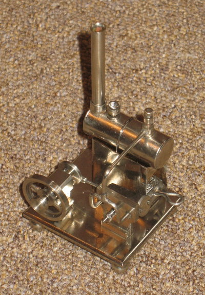 The boiler is a miniscule 16mm diameter x 42mm length and is fired by a vapourising meths burner.It is fitted with a dummy chimney, a safety valve and a steam regulator valve. There is no water level indication.