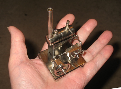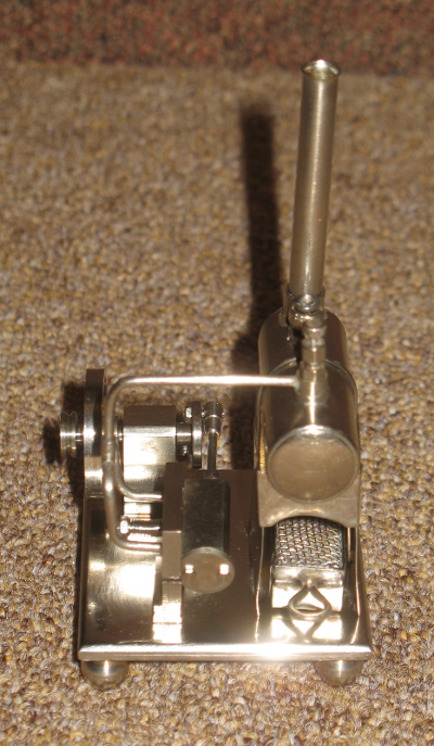 This little gem of an engine was designed and built by Paul Cooper. I don't know if it has a model number. It is made mostly of nickel plated brass. The base is 55.5mm x 50.5mm and fits easily in the palm of my hand.