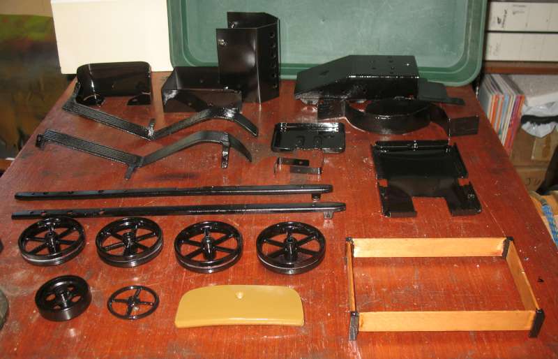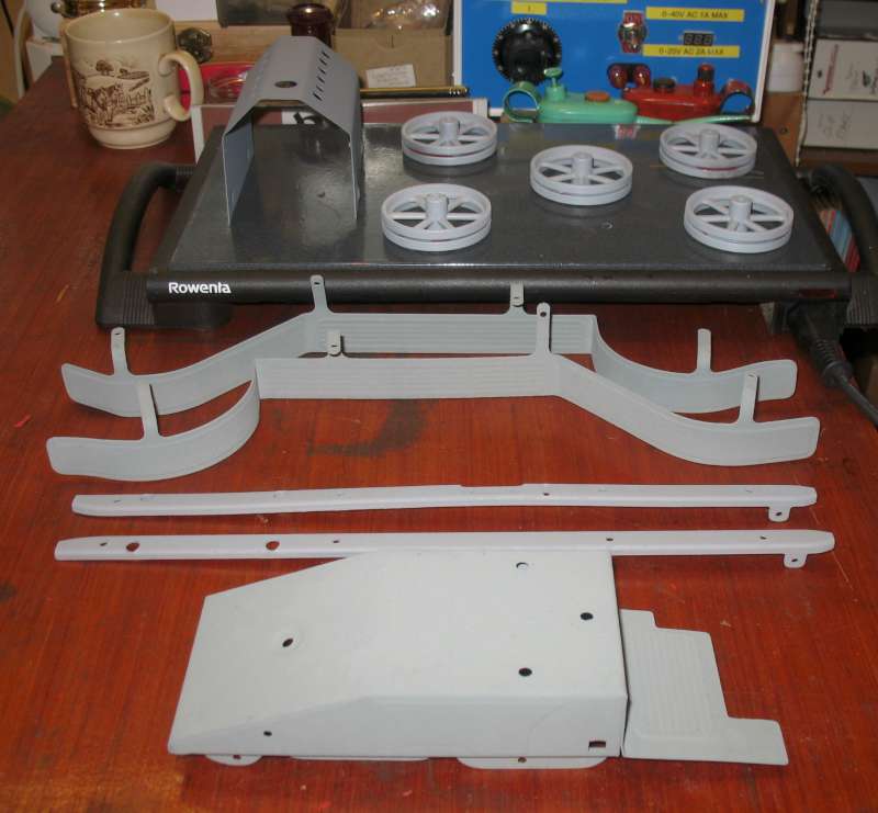 You may notice in the photo that the plastic seat (front centre) has warped, possibly a reaction with the solvent in the paint or, more likely, I warmed it up too much in drying! I need to remake it using wood.