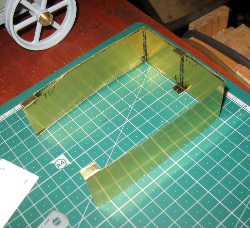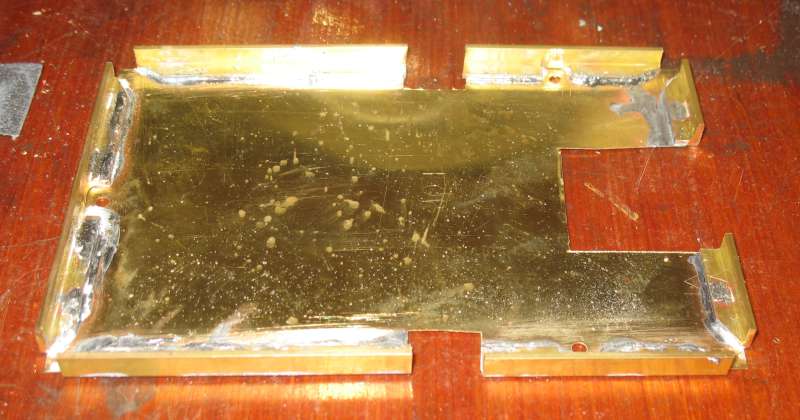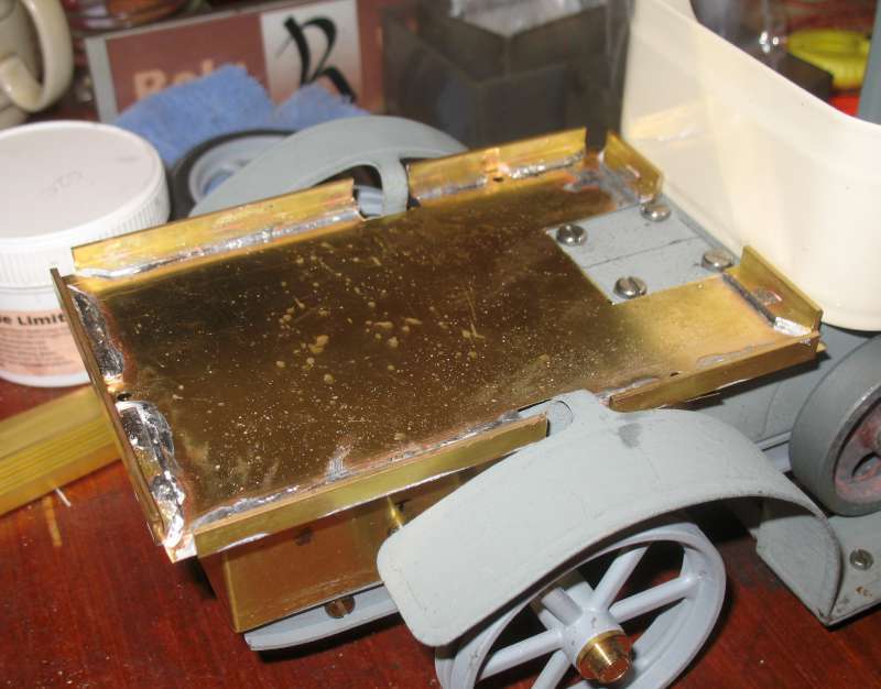 The next step was the support frame for the pickup bed. Having made a paper template to check for fit, I cut it out in sheet brass, with a few tabs for fixing (which may not be required but easier to remove than add later).