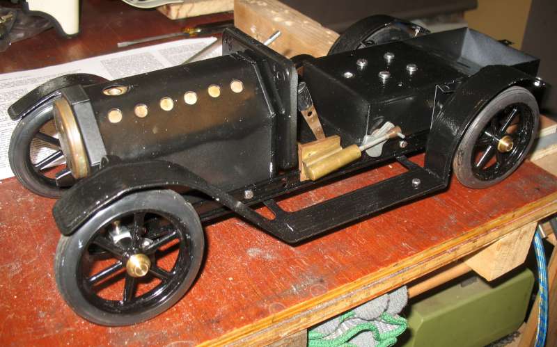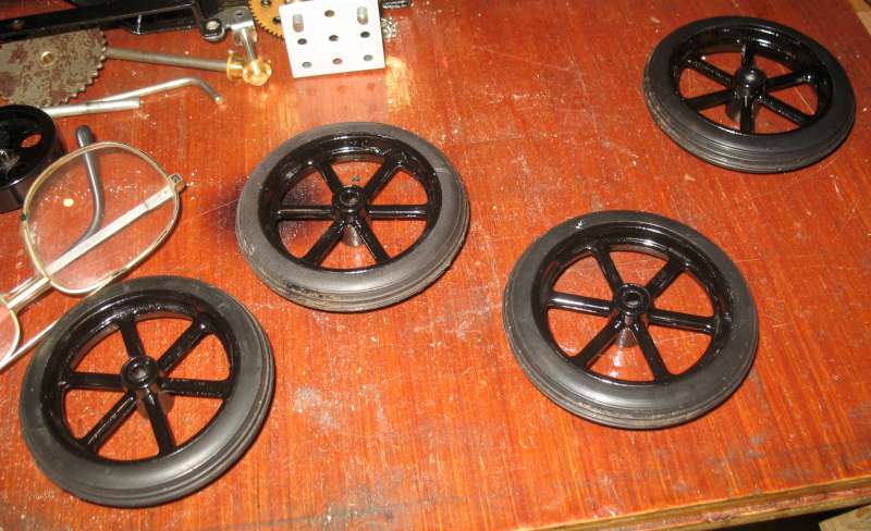 Nearly ready to be dismantled again for final painting (the tyres to be fitted after painting) ...