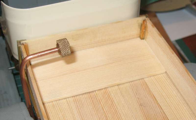 At the moment, the floor boards are loose and keep moving about, so I'll have to find some way of holding them together. The brass parts will be painted. I haven't yet decided what to do with the wood parts. I can either stain them or leave them to age naturally.