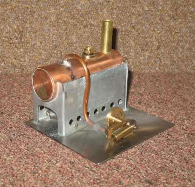 The boiler is copper, the engine, safety valve and chimney are brass, the firebox and base are aluminium. The only steel parts are the springs, screws and the crank disk.