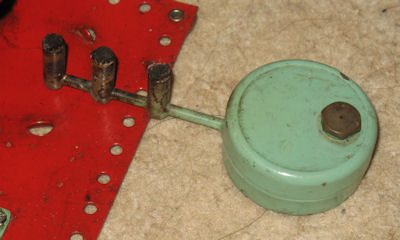 The feed pipe goes under the boiler in traditional Mamod fashion (to provide some superheating) and then directly to the cylinder. It has no lubricator or reverser. The throttle is built into the cylinder mounting block on the exhaust side. The single acting oscillating cylinder is 5/16" dia x 3/4" stroke. The exhaust is fed, as usual, to the base of the chimney.