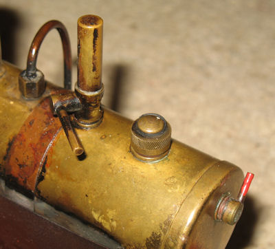 The SE2 was interesting in that it had the throttle situated in the engine exhaust. I know of no particular advantage of this design feature and, indeed, the idea didn't last into the next generation. The boiler is 1 3/4" dia x 4 7/8" long. It has the 3/8" safety valve and a standard lever operated whistle. The fitting for the steam feed pipe leaks a touch but not so much as to affect performance. Interestingly, the Tommy Bar on the overflow plug is painted red. I assume this is original as the rest of the paintwork appears to be original.